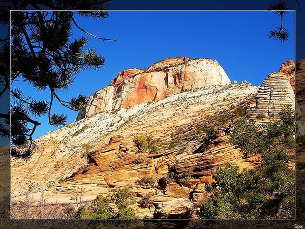 第三天的Zion風景沒有讓我失望,藍天白雲加上溫暖的天氣,掃去前一天在風雪中邁步的沈重感。