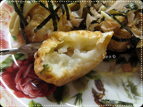 美國,絕對沒有台灣或日本容易吃到章魚丸子,但上面這一盤卻是我前幾天吃到的章魚丸,是我跟小眼的下午茶。雖然料不是很滿,但真的吃的到章魚肉。