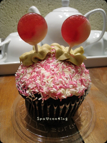 有一次跟小眼去Whole Food(後面簡稱WF)買蛋糕幫朋友慶生,等待的時候發現櫥窗裡的杯子蛋糕很可愛。(等待也可以刺激消費!?)於是不愛吃杯子蛋糕的我,也下手買了一個,因為我真的很少看到造型如此可愛的杯子蛋糕。