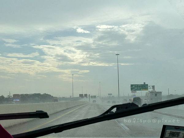 為了把握時間觀光,於是我們禮拜五等小眼下午三點下課火速出發,只是當天剛好遇到暴雨,加上禮拜五本來就容易塞車,我開了兩個半小時才到休士頓郊區的katy,如果不塞車,我應該開不到一個半小時就可以到同樣地點了。