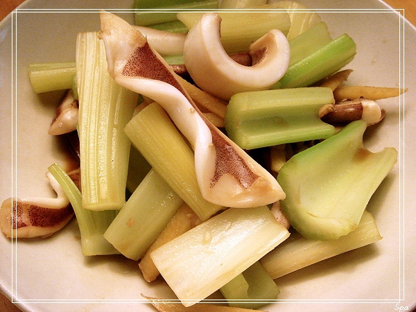 同場加映:芹菜烏賊,每次看到電冰箱炒海鮮,都很想試試看,這次是亂亂做,下次再認真點參考食譜仔細料理。