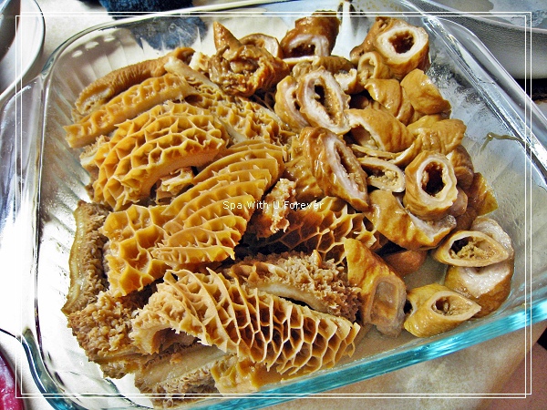 前陣子趁天冷跟朋友一起吃火鍋,我不知道發了什麼神經到網路去找大家吃麻辣鍋都點什麼?其中牛肚大腸頭真是家家必點,還有火鍋料青菜肉片等等。在SLC,想吃牛肚大腸頭都必須要自己來,於是我發狠自己滷,牛肚在wal-mart買得,大腸頭在東南有賣。
